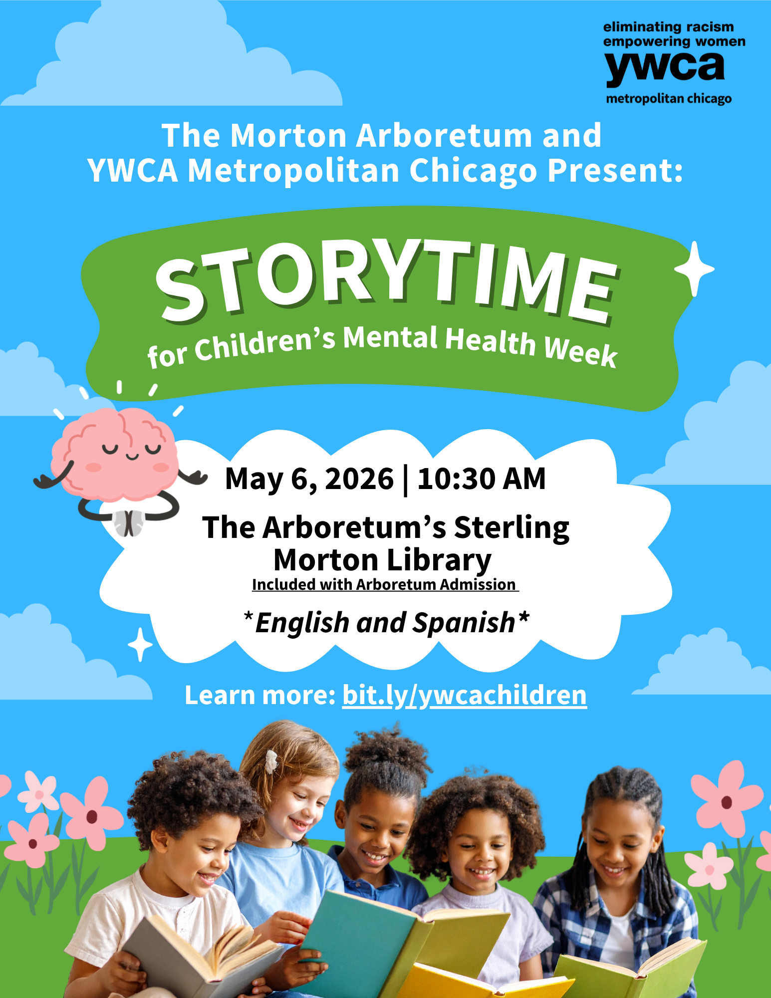 Back to All Events The Morton Arboretum and YWCA Metropolitan Chicago Present: Storytime for Children's Mental Health Week Wednesday, May 6, 2026 10:30 AM 11:30 AM The Arboretum’s Sterling Morton Library 4100 Illinois 53 Lisle, IL, 60532 United States (map) Google Calendar ICS Learn more